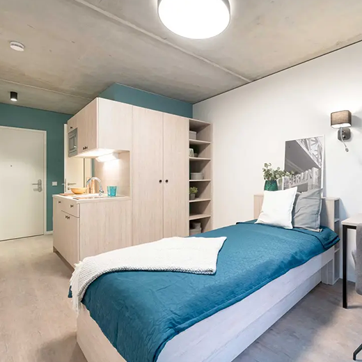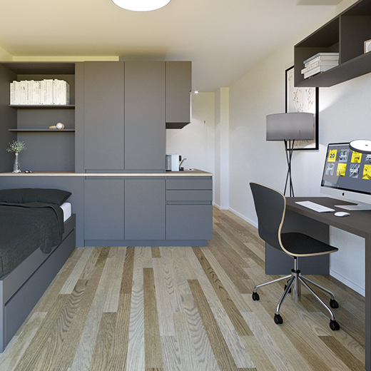Im „DORTMUNDER U“ haben wir ein zeitgemäßes Designkonzept für 437 Microapartments mit viel Liebe zum Detail geplant und realisiert. Die moderne Gestaltung in Kombination mit funktionalen, intelligent durchdachten Lösungen schaffen eine einladende Atmosphäre und unterstützen das Wohlbefinden der Studenten nachhaltig.