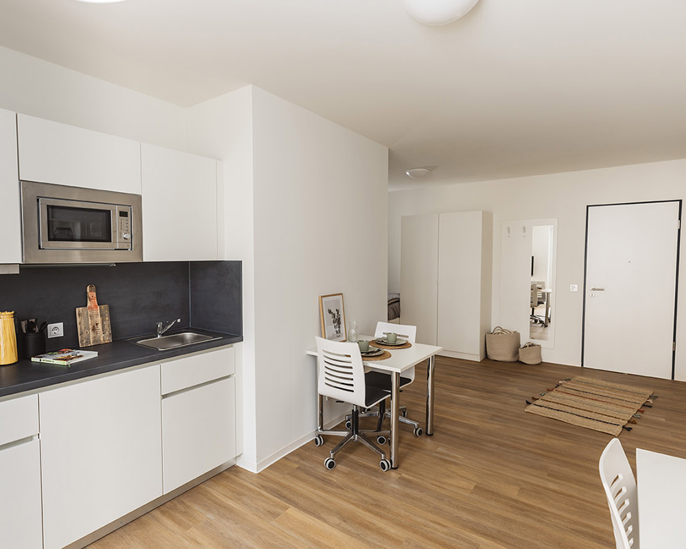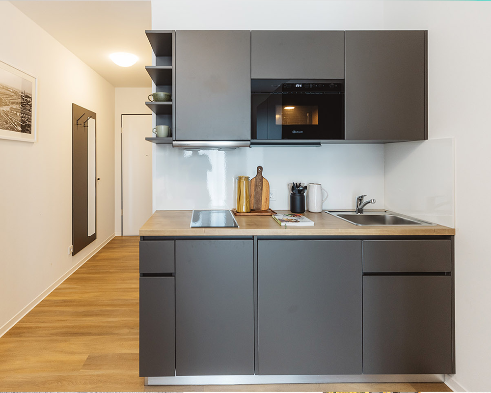 Die Apartments haben eine Größe zwischen 19,3 und 82,1 m2 und können somit jeden Bedarf decken. Mit den von Objekt und Küche Microliving perfekt angepassten Küchen, platzsparenden Schränken, bequemen Betten sowie allen anderen Möbeln, wurde ein exzellenter Beitrag geleistet, um die All-In-Apartments noch wohnhafter und innovativer zu gestalten.