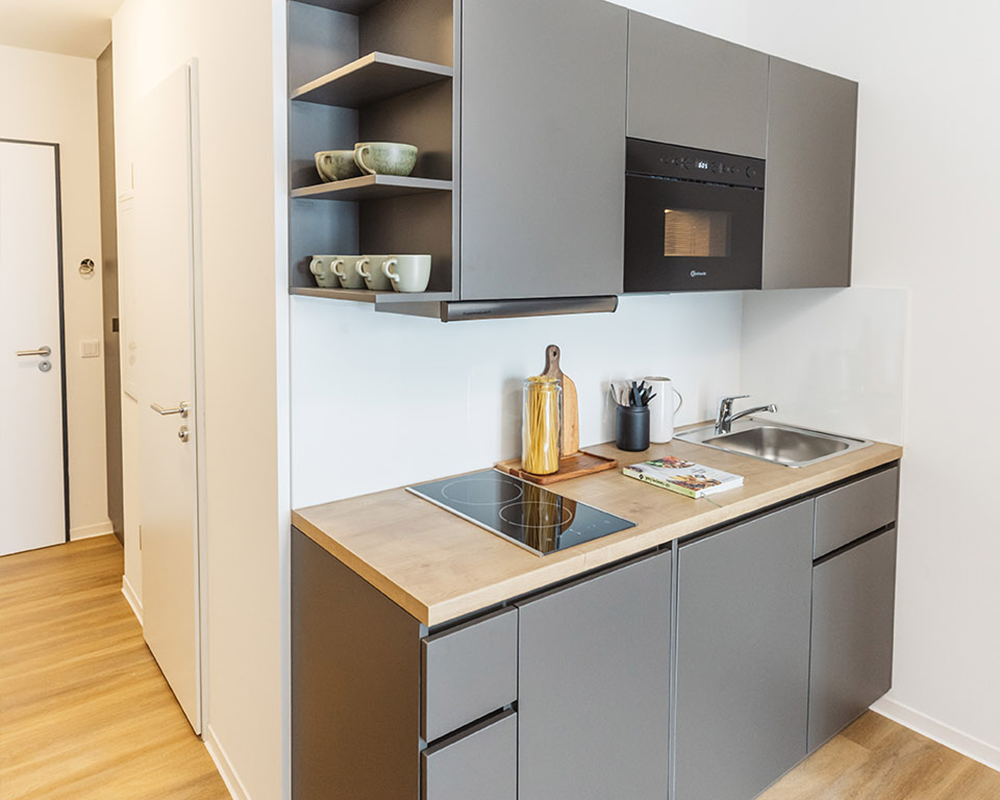 In Opladen, zwischen Köln und Düsseldorf, liegt das Quartier Cube FACTORY 577 mit 241 Standardapartments und 61 Businessapartments. Die Übergabe der insgesamt 302 Apartments durch Objekt und Küche Microliving erfolgte 2022.