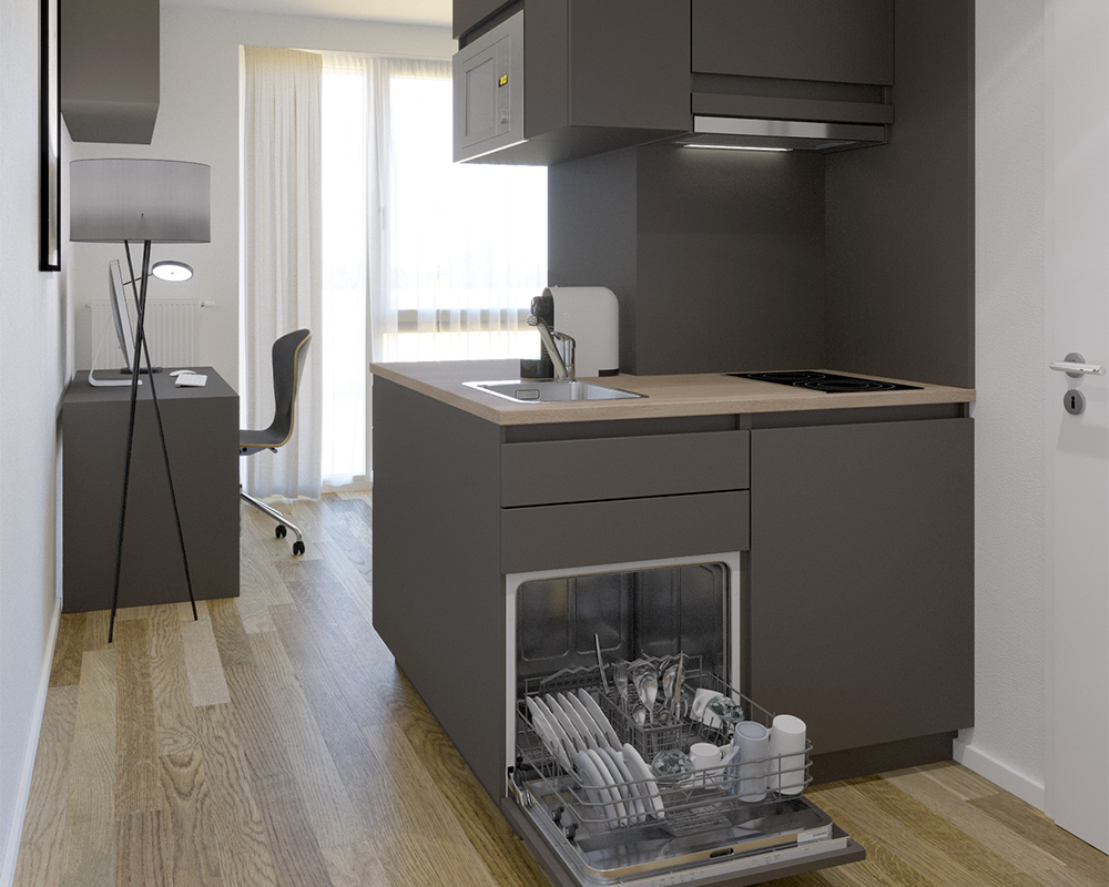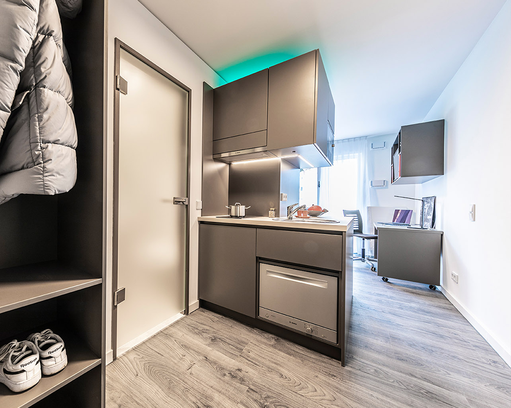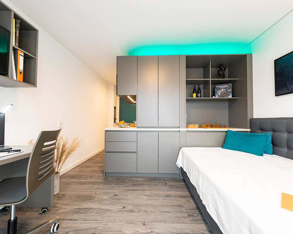 Die von Objekt und Küche Microliving entworfene Einrichtung der 90 Apartments im KARL 57 in Darmstadt sind nicht nur funktional, sondern auch einladend und bilden das pulsierende Herz dieses modernen Wohnkomplexes. Hier erleben Bewohner eine lebendige Atmosphäre, in der farbenfrohe Coolness auf hochwertige Ausstattung trifft. Ganz im Einklang mit dem aktuellen Trend ist die Anlage klein und exklusiv gehalten, um eine persönliche und ansprechende Wohnumgebung zu schaffen. Hier steht das pure Leben im Mittelpunkt.