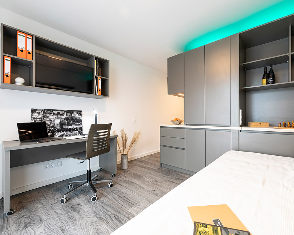 Mit Annehmlichkeiten wie einem Tischkicker für gesellige Runden, einem beeindruckenden Smart-TV für Filmabende und High-Speed-WLAN in jeder Ecke, bietet KARL 57 alles, was man für ein modernes und komfortables Leben benötigt und das alles in einer Umgebung, die nicht nur funktional, sondern auch ästhetisch ansprechend ist.